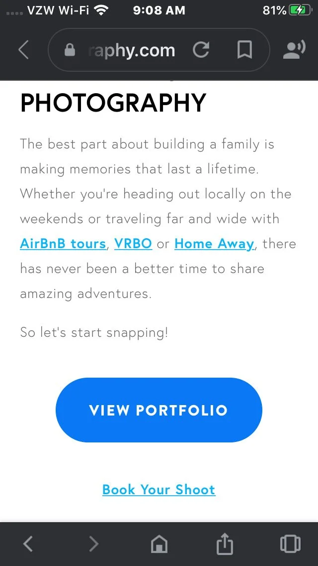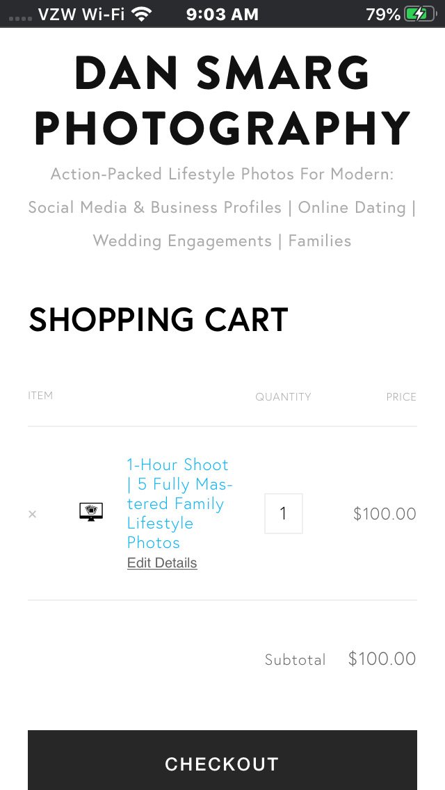 Booking your shoot and checking out is a super simple process. Start by going to the Home Page or the About Page and selecting what type of service you’d like to have…